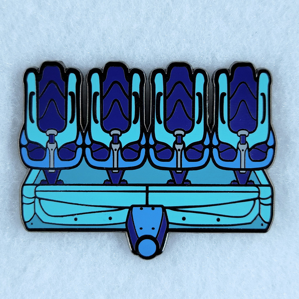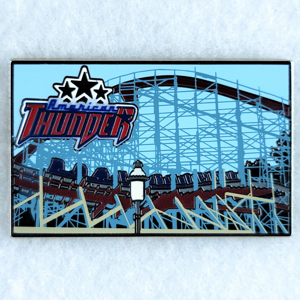 Last, but certainly not least, are the pins from Theme Park Collection. The nine pins showing different Bolliger & Mabillard (B&M) train styles were all from his most recent Kickstarter, which I covered in the blog, “Kickstarter – Fells’ Theme Park Collection, B&M Pin Set.” They came out so nice and are bigger than I expected. If you’re interested in picking up any of them, he is selling some extras on his Etsy store, Theme Park Collection.