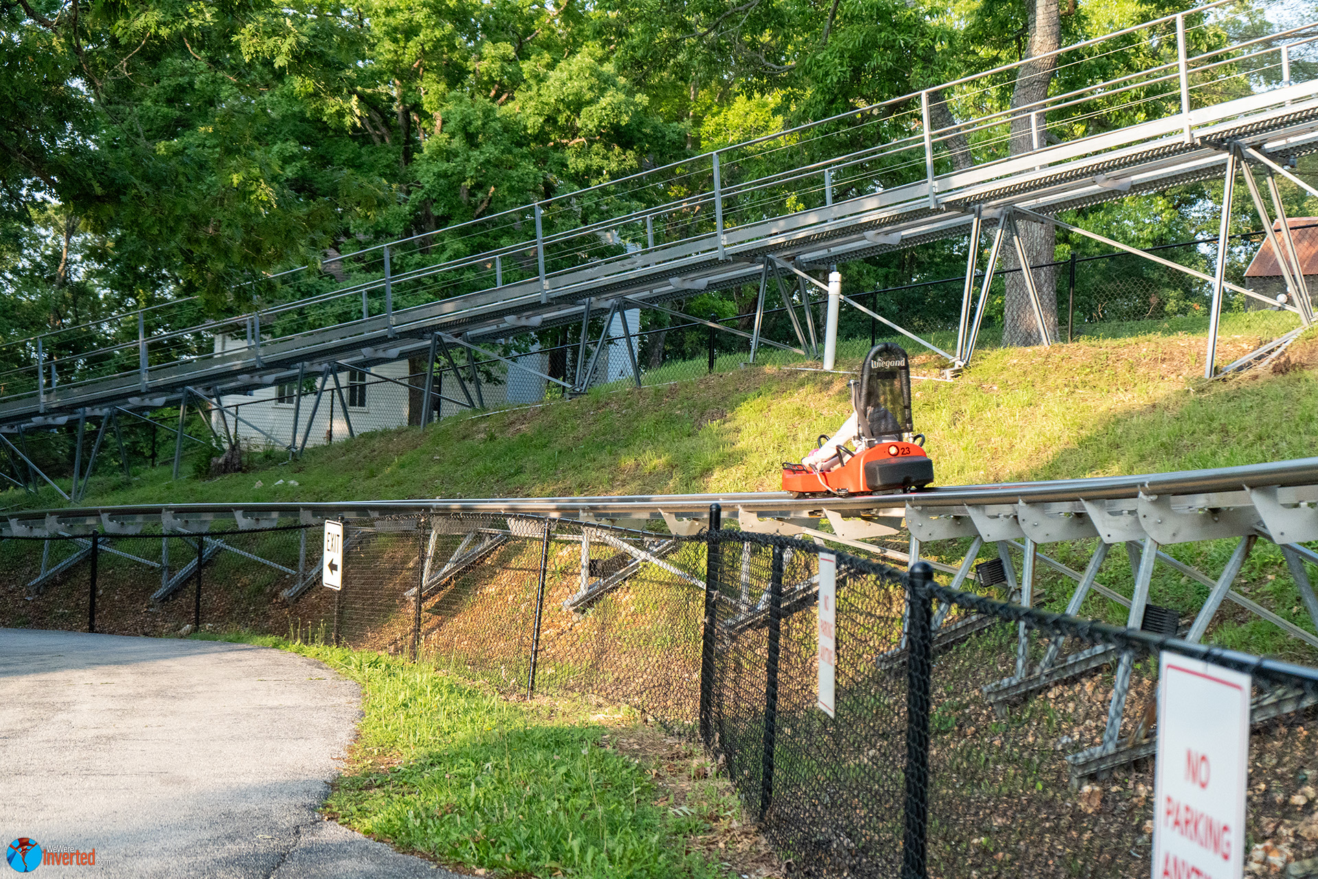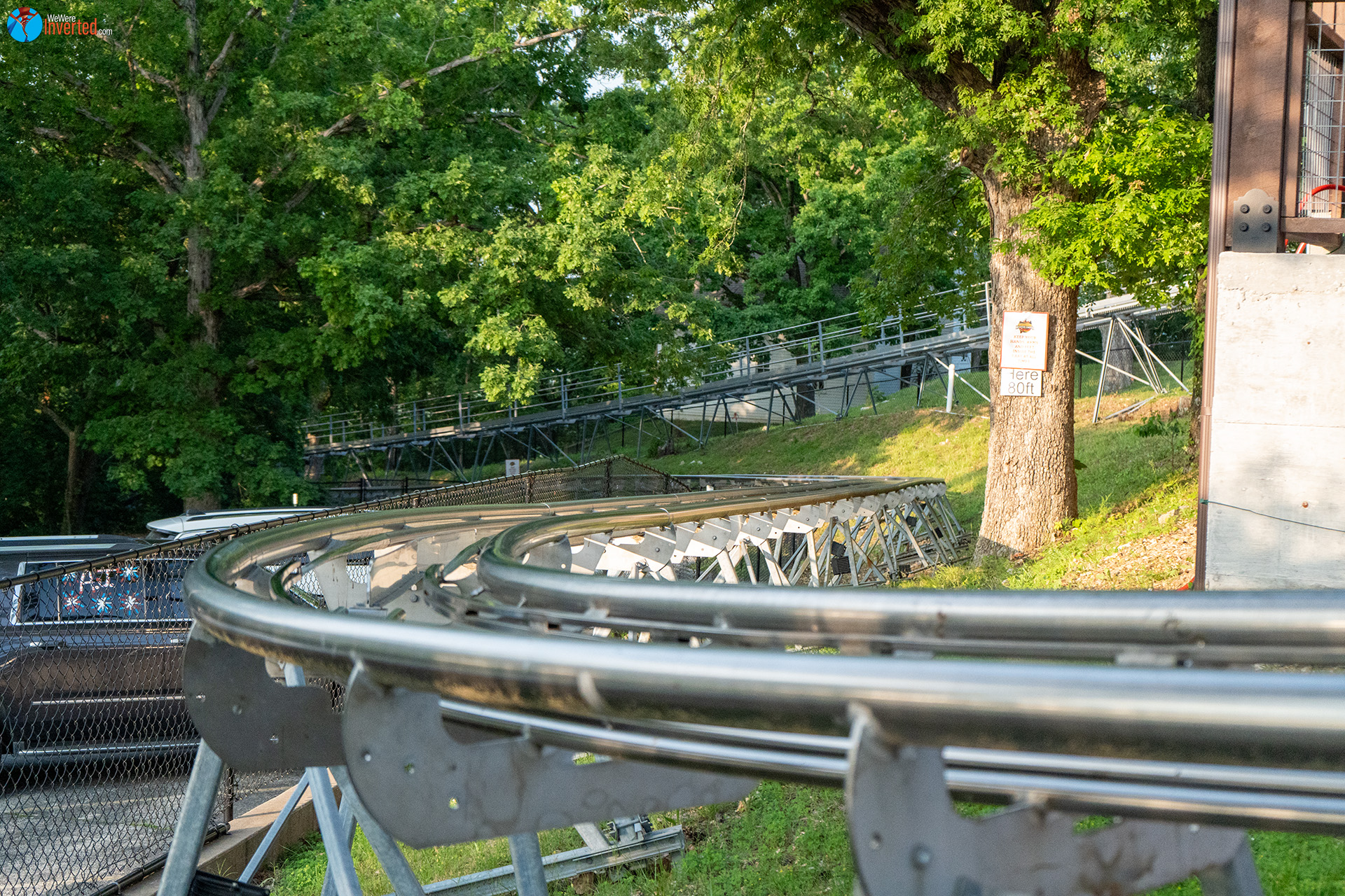 Although things kicked off with some confusion over my GoPro, I want to say that this staff was nothing short of awesome. Even the staff member who told me I couldn’t film, asked me about We Were Inverted and told me he wished his supervisor was there to see if he could clear filming for me. Between his honesty and them going out of our their way to make sure we had a worthy ride, I can’t thank them enough. When I get back to Branson, you best bet I’ll be headed back to this mountain coaster again. Maybe for a night ride? I hear they’re amazing. I’m sure it’ll be pitch black out there too. Yeah… definitely getting a night ride. Let’s go back, Sam!