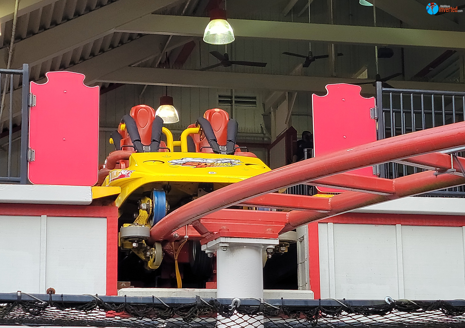 I love Fahrenheit, but I don’t always get to ride it. That’s usually due to the lines being too long and the park not operating all three trains. I made the statement in last week’s vlog that it looked like the park was running all three trains. I didn’t see the third one sitting in the service bay that visit and just assumed it was. I can now say that wasn’t true. Only two ran yesterday and it I spotted some silver chassis laying down below the service tracks in the bay. Now I’m going to assume that is the third train.