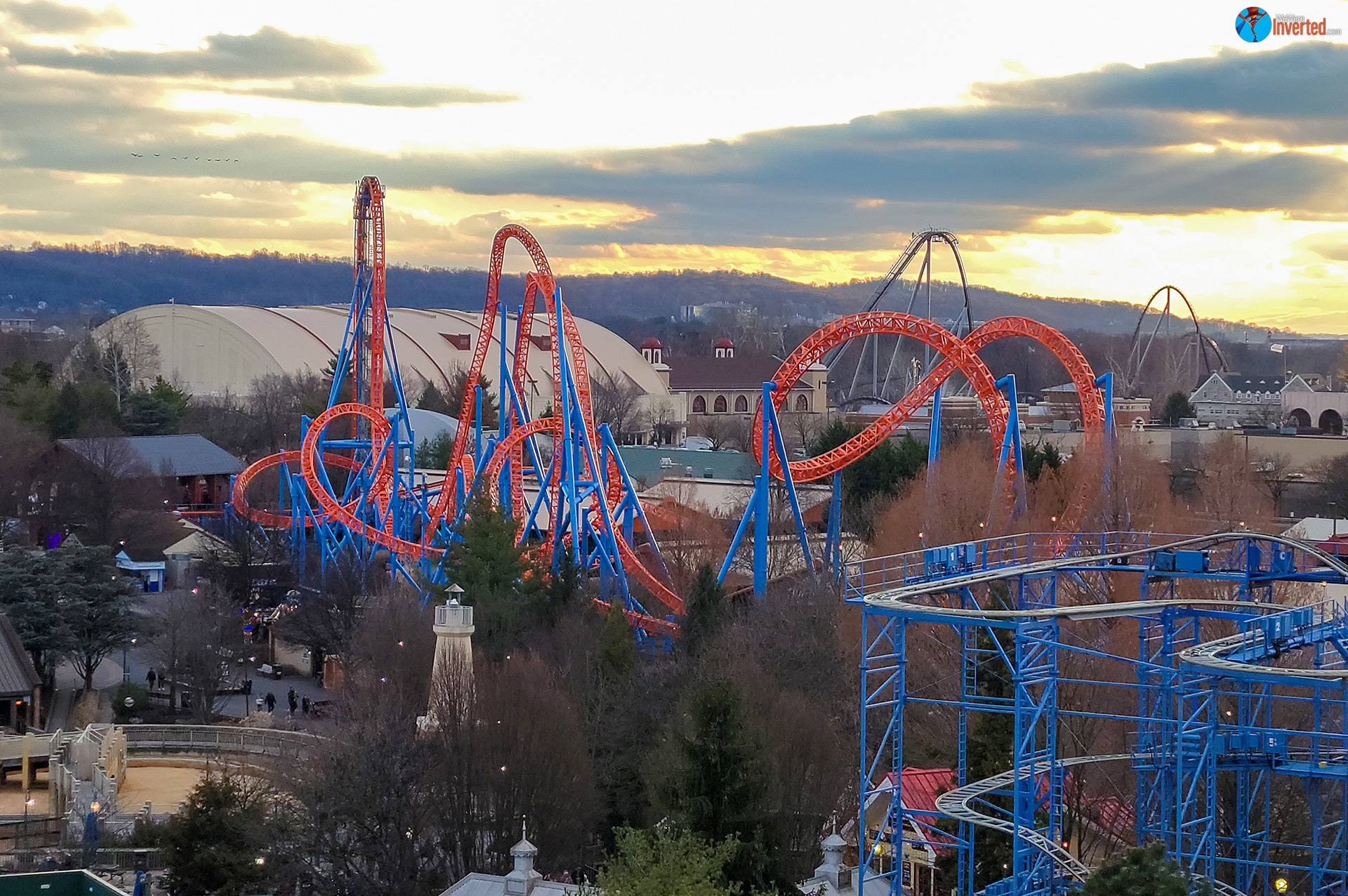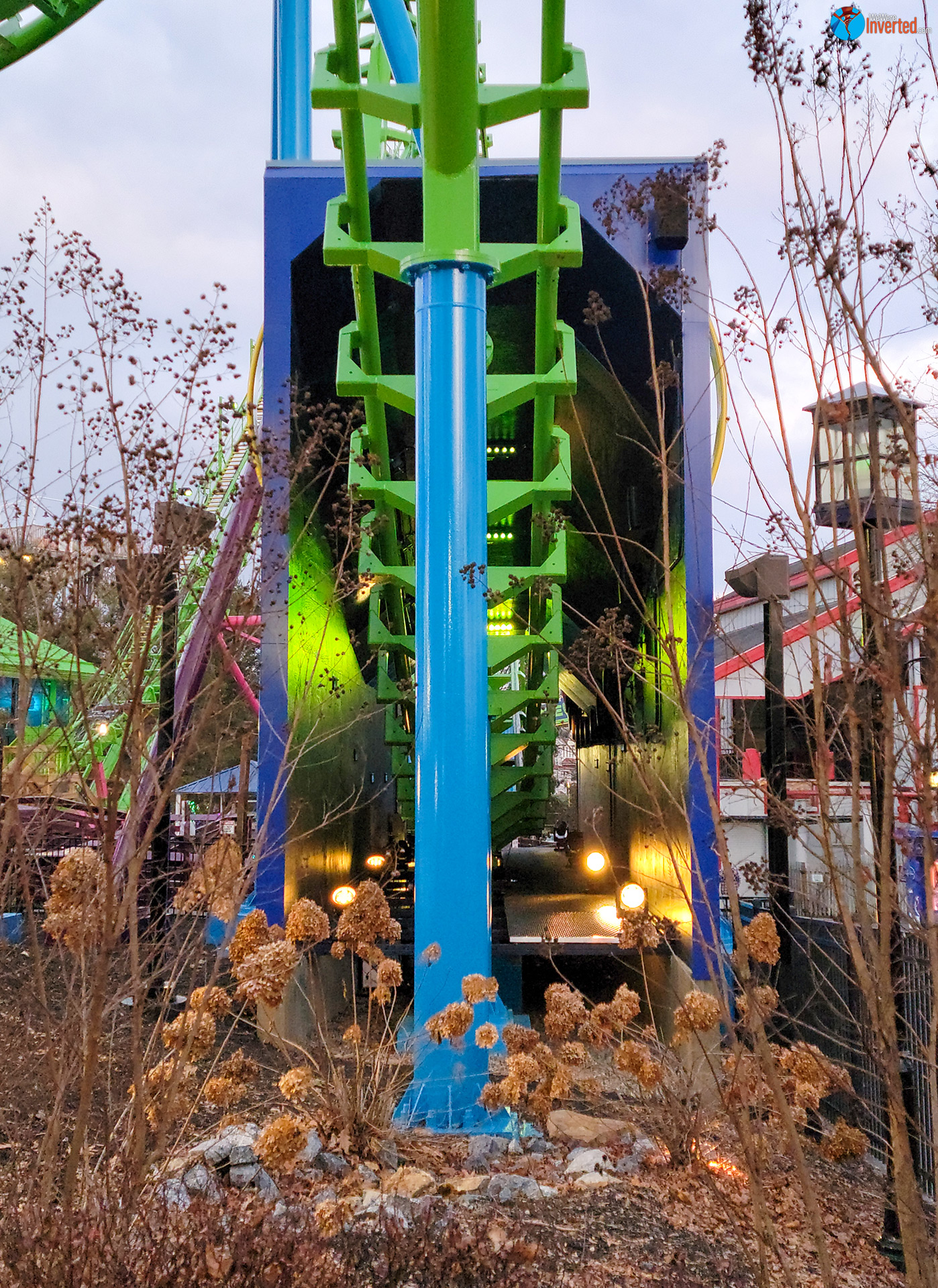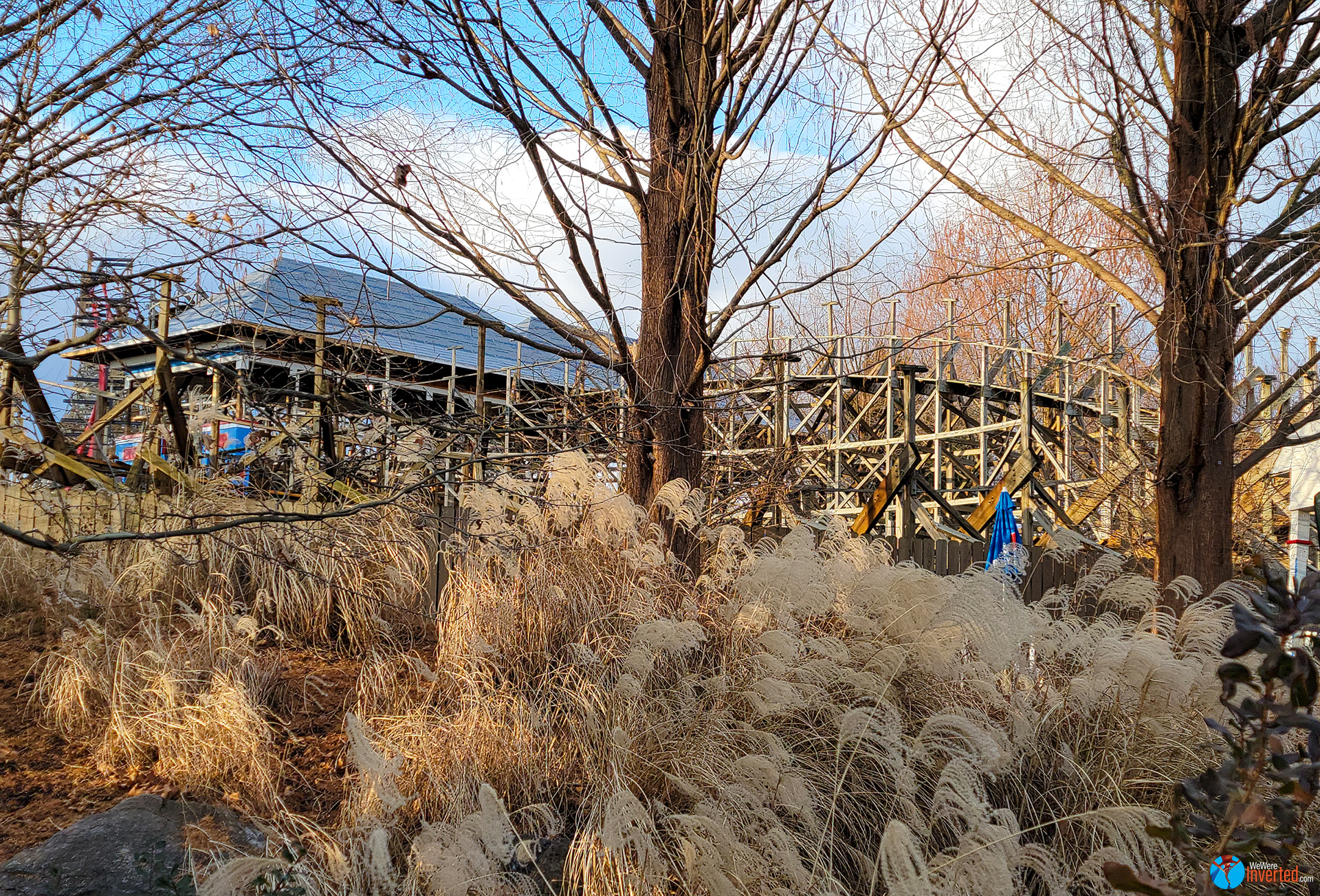 When we arrived we saw that park staff were turning people away from Candymonium. We hoped that it might open at some point, but didn’t hold out much hope. According to the park app, Sooperdooperlooper was running, but we decided to wait to ride that until later. I wanted to squeeze in some photos of Wildcat’s Revenge before the sun went down.