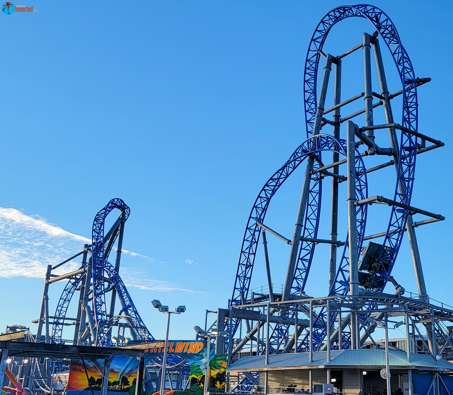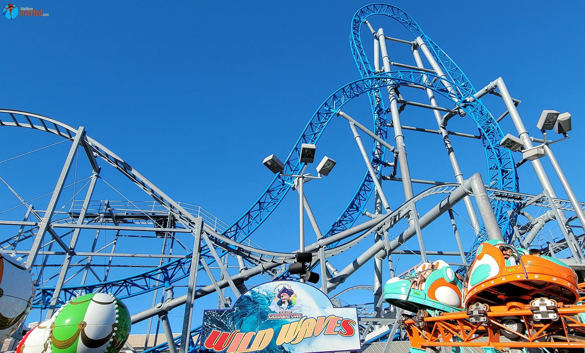 With the way I had planned our day, Sam would be heading into PCC sitting at 99 credits. We were going to jump on GaleForce immediately upon arrival for her 100th. Since Sea Serpent was still testing earlier when we left Morey’s Piers earlier, she was one credit behind the plan. It didn’t matter though. PCC has four coasters so we’d just need to ride one of them before GaleForce. We picked Wild Waves since it wraps around the blue S&S Sansei multi-launch coaster. We thought of it kind of like a teaser. It made sense in our heads, at least.
