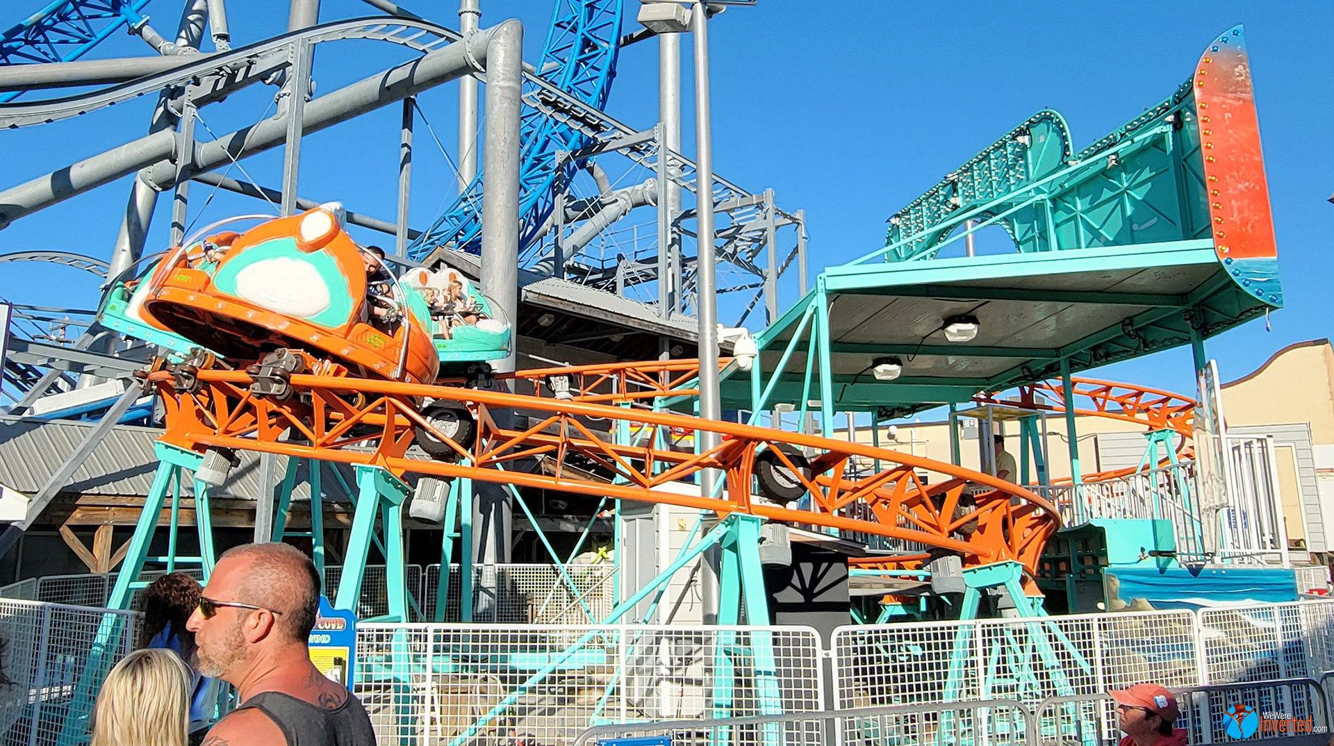 Once the ride got going… wow! Simply, wow! This ride gave several moments of airtime and it yanks riders with attitude through its numerous twists and turns. And even though there are no inversions, this thing feels like it inverts to me. It has to be the closest you can come to inversions without being inverted. So on this one, I guess We Weren’t Inverted?