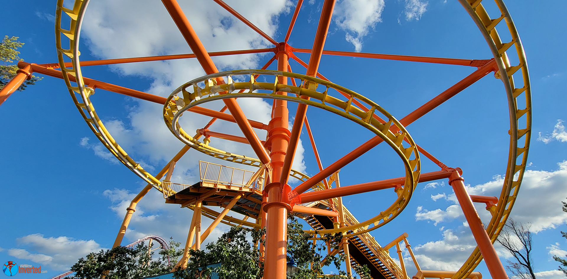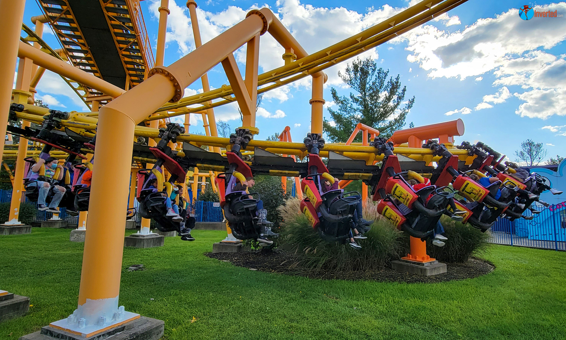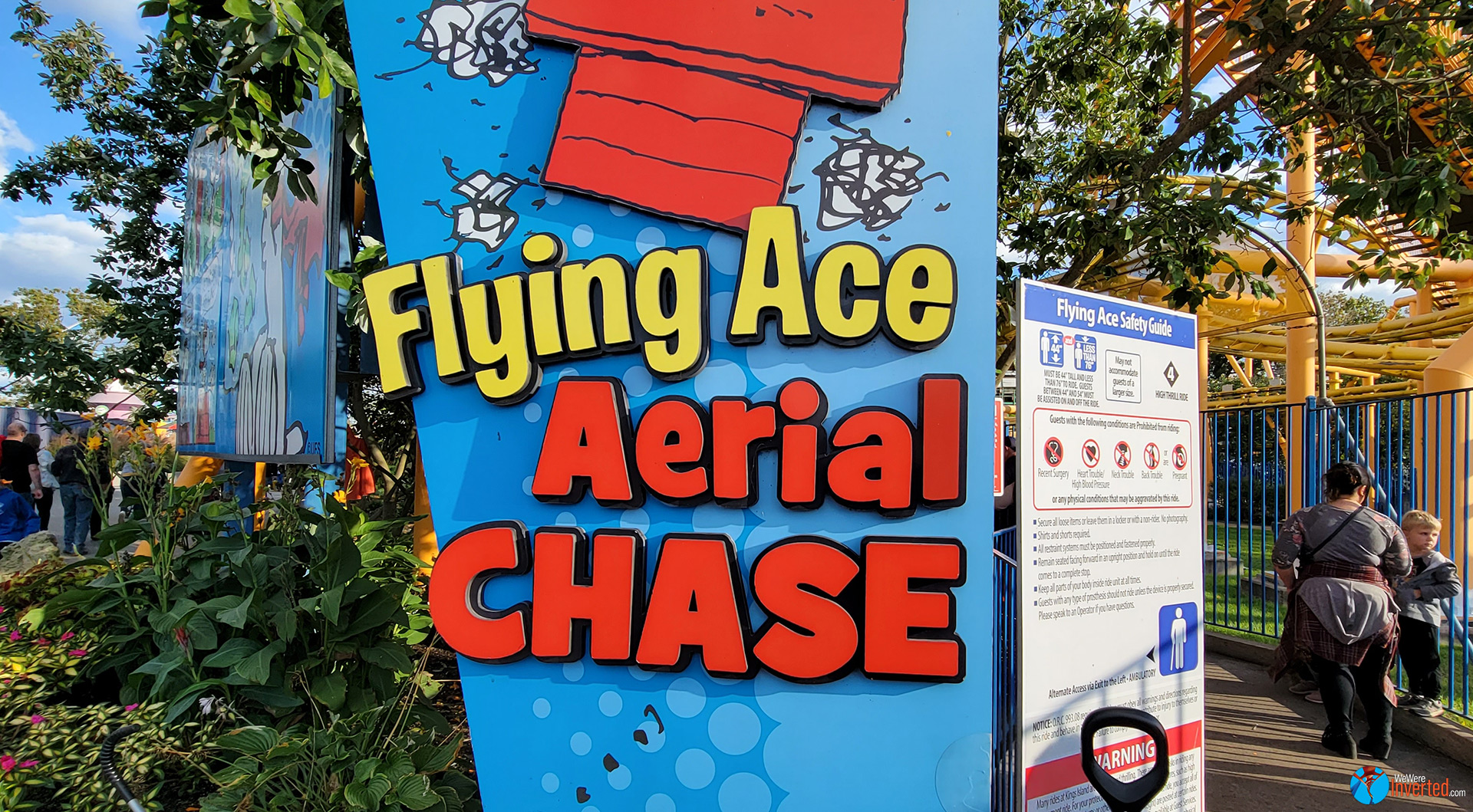 Flying Ace Aerial Chase, on the other hand, actually rode better than both Sam and I expected. A few months ago we rode Kiddy Hawk at Carowinds. That installment felt a lot more janky, with more head banging moments throughout its entire course. I don’t think I banged my head once on Flying Ace. It also looks like Kings Island is giving it’s Vekoma Family Invert a repaint just as Carowinds recently had. As a matter of fact, it feels like every major park has at least one ride/attraction being repainted right now. Kings Island’s Eiffel Tower is also being repainted as I write this.