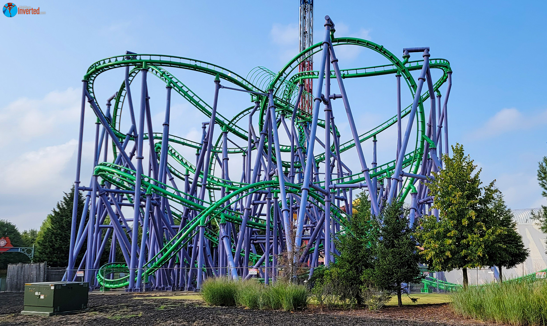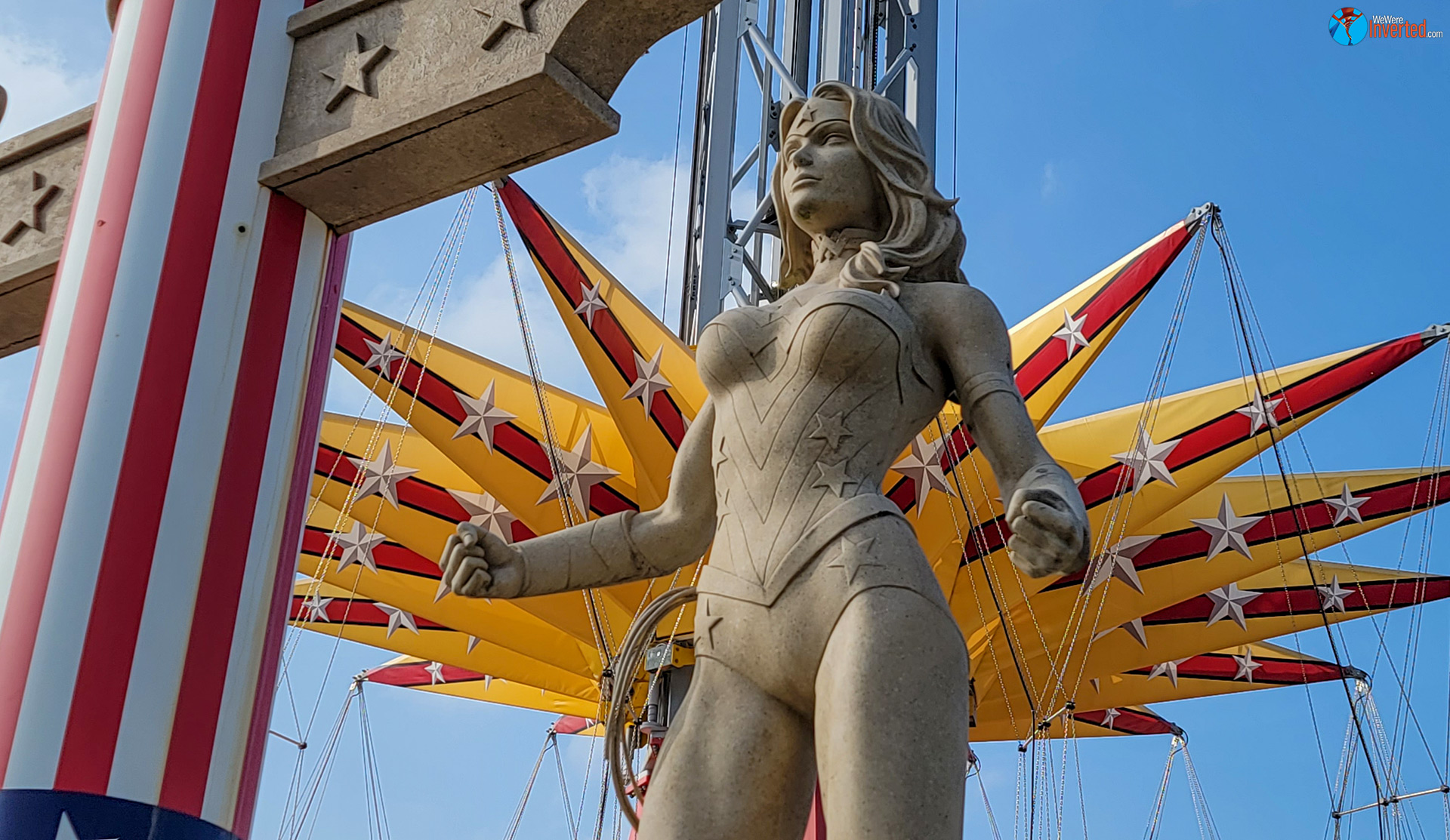 Yesterday’s visit was my first seeing Harley Quinn Spinsanity, a Zamperela pendulum, in operation. It occupies the former sky coaster plot of land and has been something I’ve wanted to try being a fan of Wonder Woman Lasso of Truth, at SFGAdv. I waited about 20 minutes, but it was well worth it! I was assigned seat four and on practically every high point, my seat was being rotated over the edge.