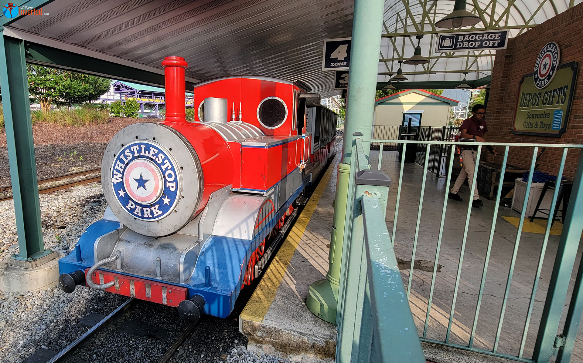 After seeing the line for Batwing, I walked through Whistlestop Park on my way to Shipwreck Falls. I the Whistlestop Train pulling into the station with no one in the queue. I’ve never ridden this small train before, but thought I might be able to get some good photos from it as well. No one else boarded making this one of my three Zen rides of the day, with the other two being Penguin and Shipwreck Falls. I almost had one on Mind Eraser too, but several people ran back up the ramp last second and were able to board.