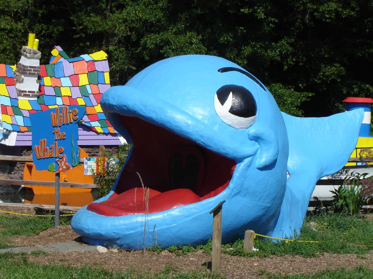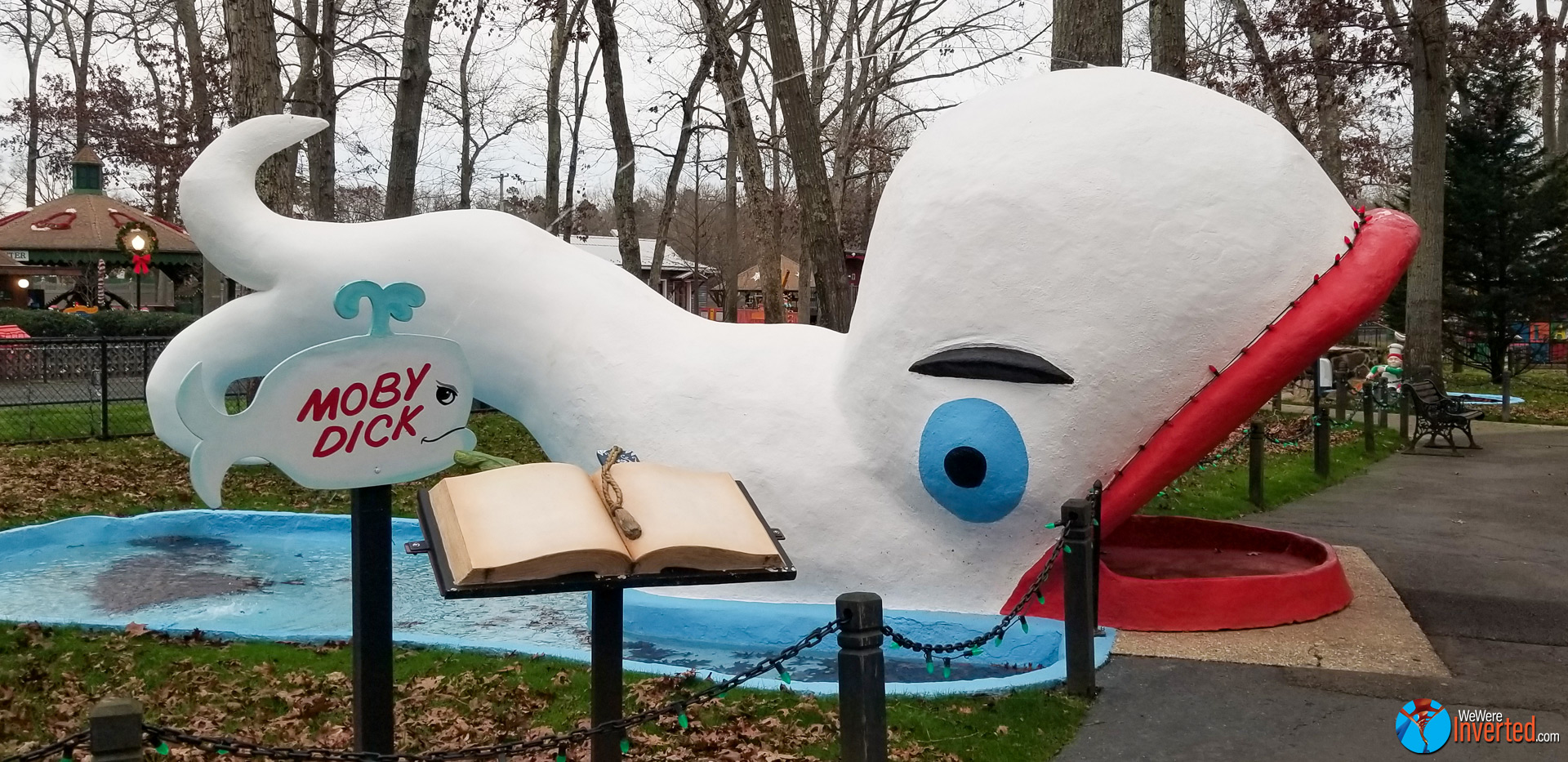 About 15-20 minutes into my filming session is when I noticed yet another scene that took me back to the Enchanted Forest once again. Back when I was a kid, I crawled inside the mouth of Willie the Whale (above, left) too many times to count. When I saw Storybook Land’s Moby Dick display (above, right), I stopped dead in my tracks. I even stuck my head inside and smiled under my mask. No, I didn’t crawl in Moby’s mouth. My much older self didn’t want to have to be rescued while representing ACE.