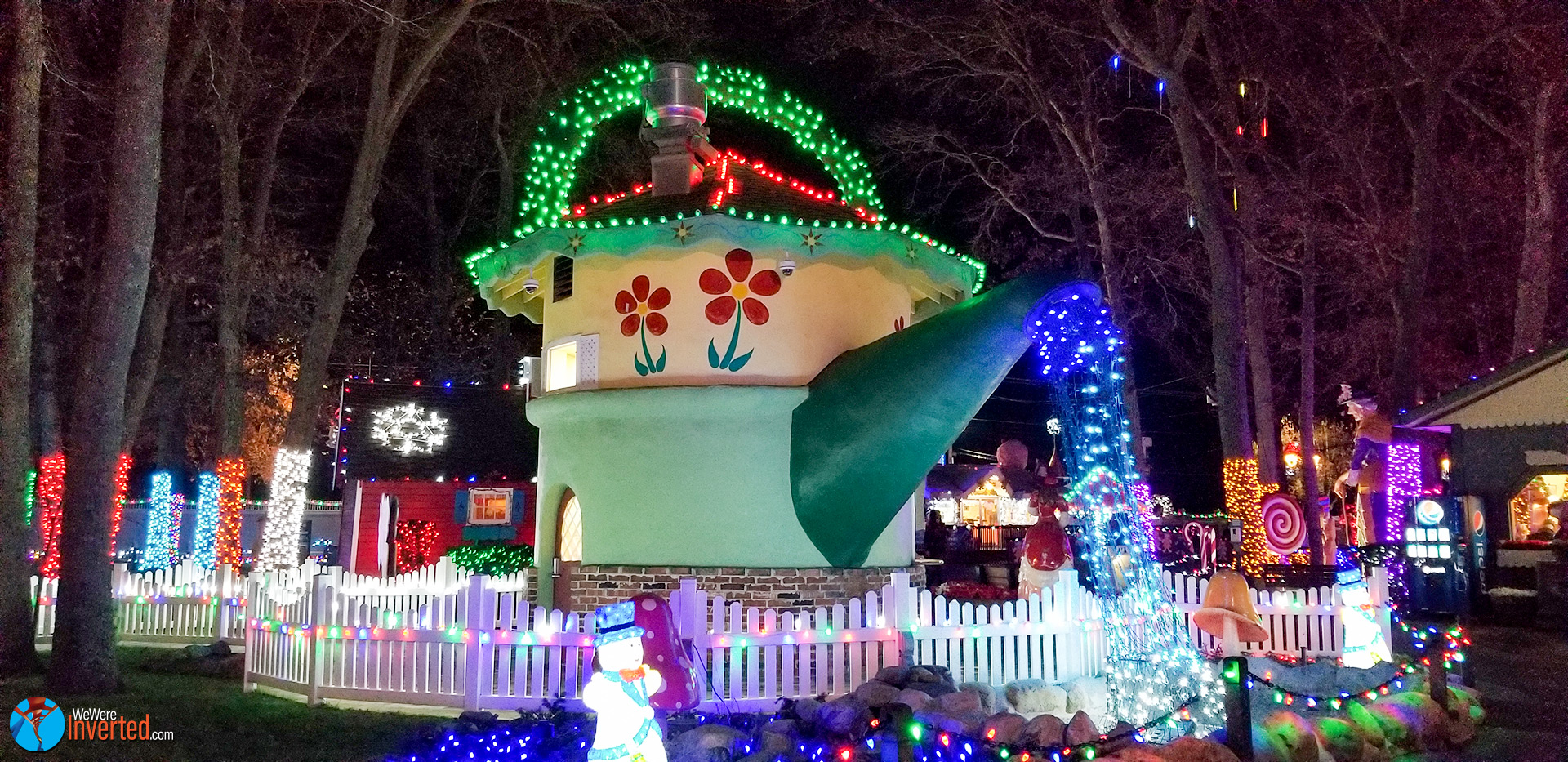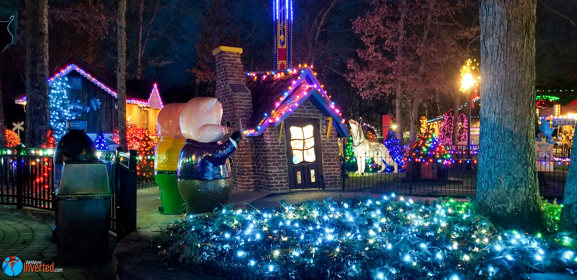 As I walked out of Tick Tock Drop, I filmed the ride and it’s amazing light package before darkness set in. I then hit the gift shop and grabbed a bite to eat. That’s where I met Hailey/Haley (spelling?). She was working at the Dining Depot and had some of the best customer service. As I was looking over the menu, she told me all about the park and how I didn’t want to miss Christmas light display. In just a few minutes, Santa, with the help of all the kids at the park, would turn on the lights. Not wanting to miss it, I ordered my food and thanked her for the information.
